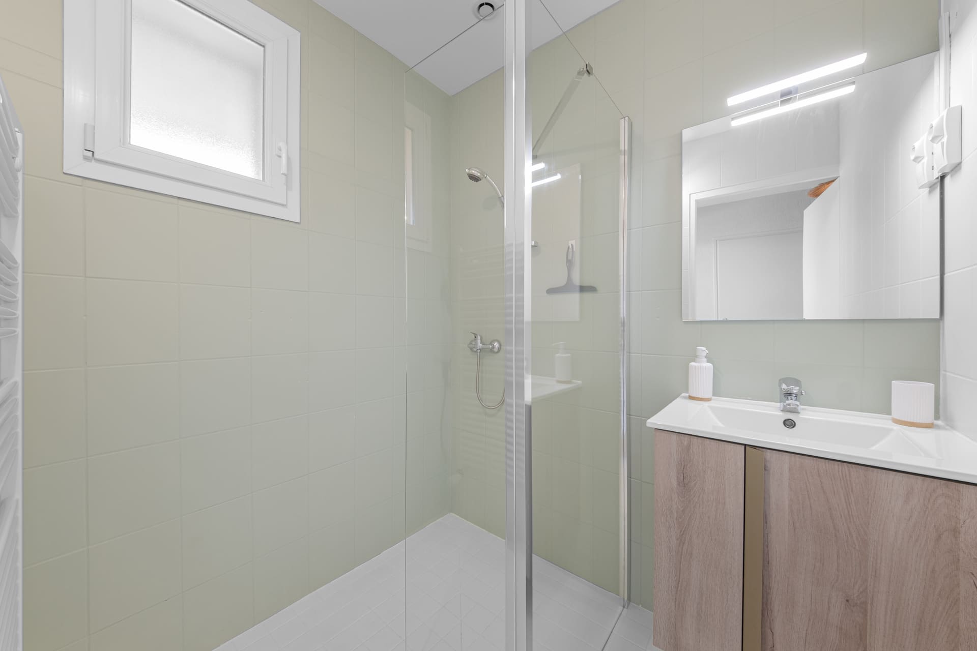 Située dans l'annexe au rez-de-chaussée à l'arrière de la maison, elle dispose de tout le nécessaire pour un